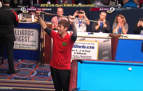 So far he is the only Taiwanese pro to win a U.S. Open 9 Ball Championship title.